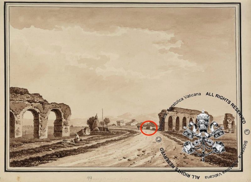 potrebbe essere presente in uno degli acquerelli settecenteschi del Labruzzi, conservati nella Biblioteca Apostolica Vaticana.