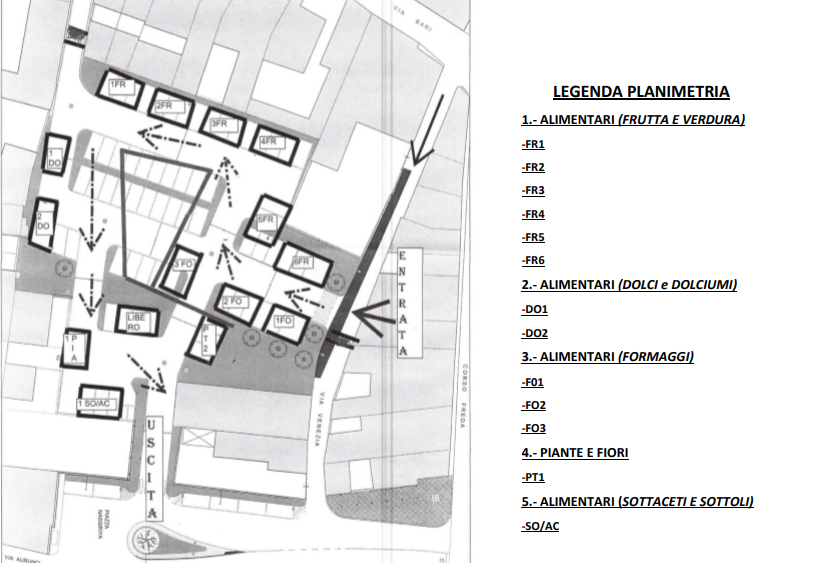 Al fine di regolare gli accessi si è deciso di concentrare il mercato nell’area parcheggio di Piazza Nassirya, separando la zona di ingresso da quella di uscita ed evitare assembramenti. Il punto di accesso è stato individuato in via Venezia, mentre l’uscita avverrà su Piazza Nassirya.