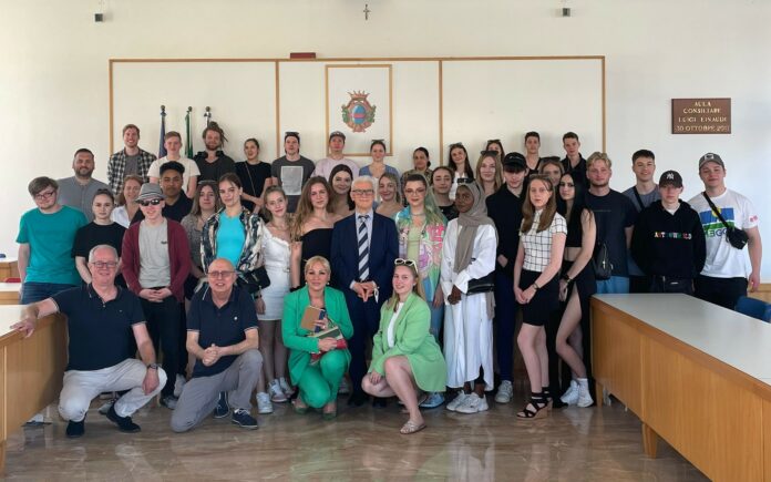 Gli studenti dell’istituto professionale di Dachau a Fondi – Cresce e si rafforza sempre più l’amicizia tra Fondi e Dachau con continui incontri, scambi culturali e viaggi organizzati nell’ambito del gemellaggio. L’ultima visita questa mattina quando il sindaco Beniamino Maschietto ha ricevuto gli studenti e i professori dell’istituto professionale della cittadina bavarese gemellata con Fondi.