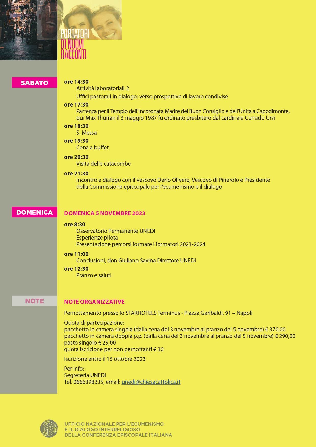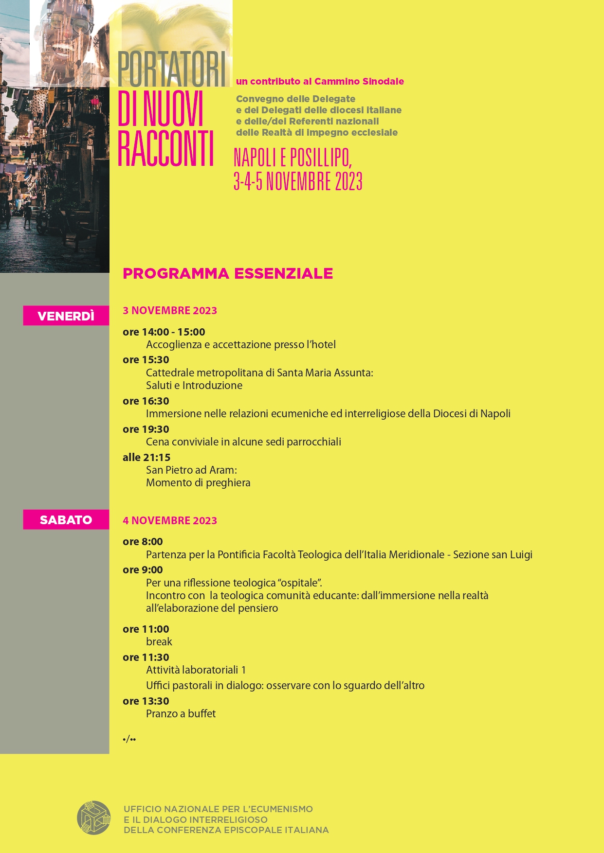 Commissione Nazionale per il Dialogo e l’Ecumenismo propone a Napoli Portatori di Nuovi Racconti 3 – 4 – 5 Novembre