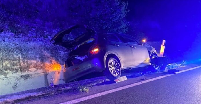 finendo in una cunetta a bordo strada, con l’autovettura inclinata su un fianco.