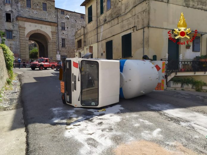 I Vigili del Fuoco del Distaccamento di Latina sono intervenuti con professionalità e determinazione nel centro storico di Terracina in Corso Anita Garibaldi 44 per il ribaltamento di un’autocisterna contenente circa 2.500 litri di GPL.