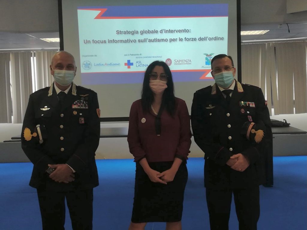 Nella giornata odierna si è tenuto presso la Sala conferenze del Consorzio Industriale sito a Latina Scalo, promosso dall’Associazione LatinAutismo, in collaborazione con il Comando Provinciale dei Carabinieri di Latina e la ASL locale, con i patrocini gratuiti dell’Università La Sapienza e della Provincia di Latina, un corso rivolto all’Arma dei Carabinieri sul tema “ Autismo : strategia globale di intervento – un focus informativo sull’autismo dedicato alle Forze dell’Ordine.