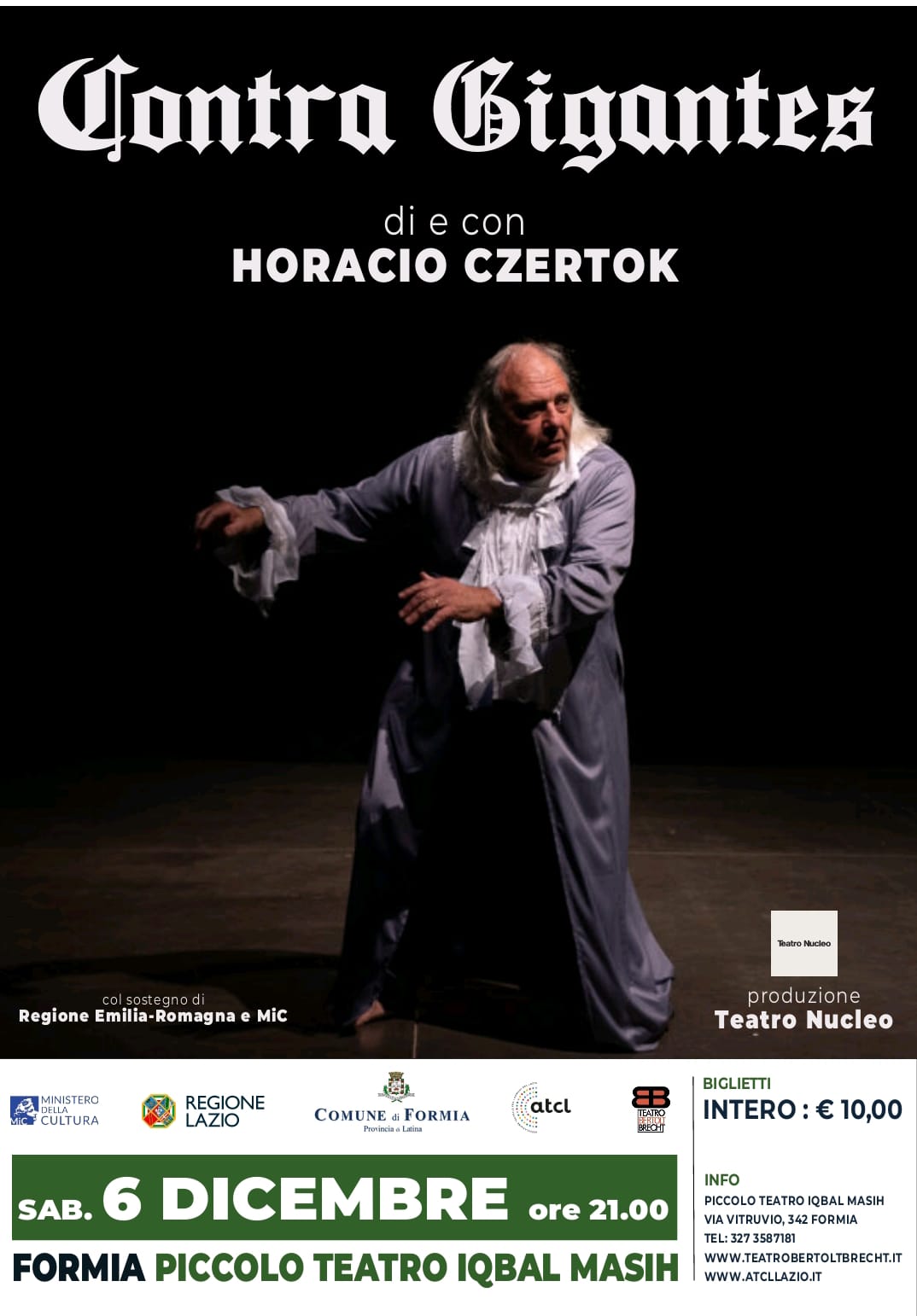 Dopo lo straordinario inizio di stagione con Peppe Servillo ci aspetta un altro maestro Orazio Czertok regista attore , fondatore del Teatro Nucleo di Ferrara. Il suo lavoro dedicato a Don Chisciotte è stato rappresentato in tantissimi teatri in tutto il mondo. Orazio Czertok è stato allievo di Jerzi Grotowski.