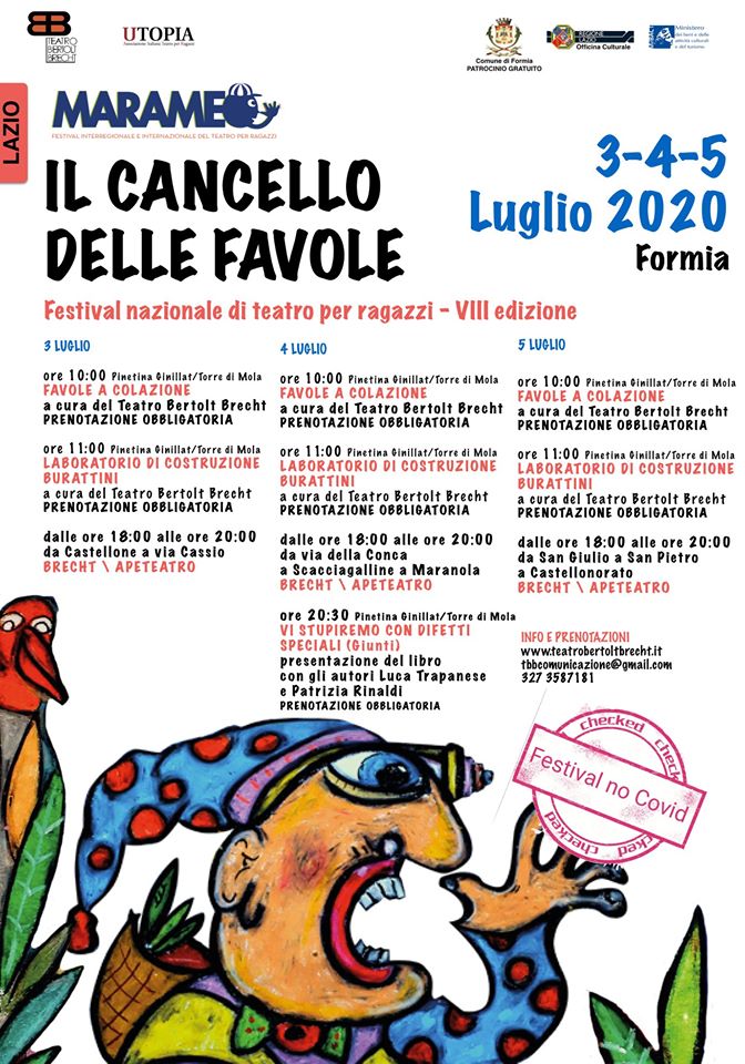 “Giunto alla sua VIII edizione Il Cancello delle Favole, il Festival Nazionale di Teatro per ragazzi promosso dal Teatro Bertolt Brecht, quest’anno in’edizione speciale presenta un programma riadattato e una location diversa ma torna con l’allegria di sempre. Da venerdì 3 a domenica 5 luglio a Formia da mattina a sera letture, laboratori, spettacoli, incontri con autori tutti nel rispetto delle norme anti Covid-19. Si inizia alle ore 10:00 presso la pinetina Ginillat con le favole a colazione e si prosegue alle 11 con il laboratorio di costruzione dei burattini. Ogni sera dalle ore 18:00 alle ore 20:00 nei quartieri della città l’ “Apeteatro Brecht” da Castellone a Maranola, da Mola a San Pietro tutta la città sarà invasa da un’ apetta cantastorie. La mitica Ape tre ruote nasce nell’immediato dopoguerra, quando in pochi potevano permettersi un veicolo commerciale o un’automobile. Da allora ha trasportato ogni cosa e ogni persona, accompagnando l’Italia in una rinascita piena di speranze. Per questo il collettivo ha scelto di trasformare l’ape in un piccolo teatro vagante pieno di musica, colori e avventure della maschera più popolare e più legata ai sorrisi dei bambini: Pulcinella. L’Ape Teatro Brecht annuncia il suo arrivo tra le strade e i quartieri, col suo carico di musicisti e burattinai, nelle sue soste si trasforma in un vero e proprio teatrino per raccontare le avventure dell’immortale Pulcinella. Il 4 luglio alle ore 20:30 sempre presso la Pinetina Ginillat la presentazione del libro “Vi stupiremo con difetti speciali” (Giunti) con gli autori Luca Trapanese e Patrizia Rinaldi, le storie illustrare di tre bambini disabili. Raccontare la “disabilità”per portarla fuori da certe stanze chiuse e comunicare lo sforzo, che è in sé positivo, di affrontare la vita quando ti mette davanti scalini molto grandi. Raccontarla attraverso delle storie scritte e illustrate bene, perché le storie raccontate bene sanno sviluppare empatia in chi le legge. Il progetto nasce dal sogno di Luca Trapanese, padre adottivo di Alba e presidente di una Onlus che si occupa di disabilità infantile, di tutti coloro che si impegnano quotidianamente con i disabili, e dei bambini che meritano un mondo che crede nell’inclusione”. Per prenotazioni: 327 3587181 tbbcomunicazione@gmail.com