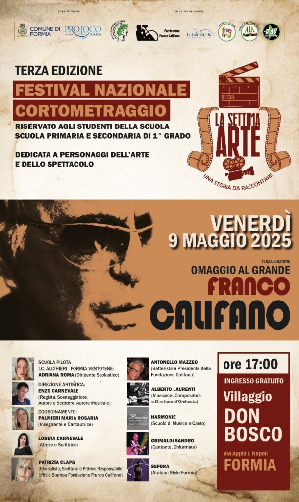 Formia celebra Franco Califano al Festival Nazionale del Cortometraggio – Il Festival Nazionale del Cortometraggio torna a Formia il 9 maggio 2025,