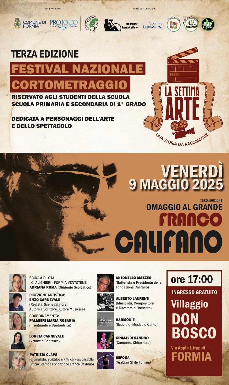 Formia celebra Franco Califano al Festival Nazionale del Cortometraggio – Il Festival Nazionale del Cortometraggio torna a Formia il 9 maggio 2025,
