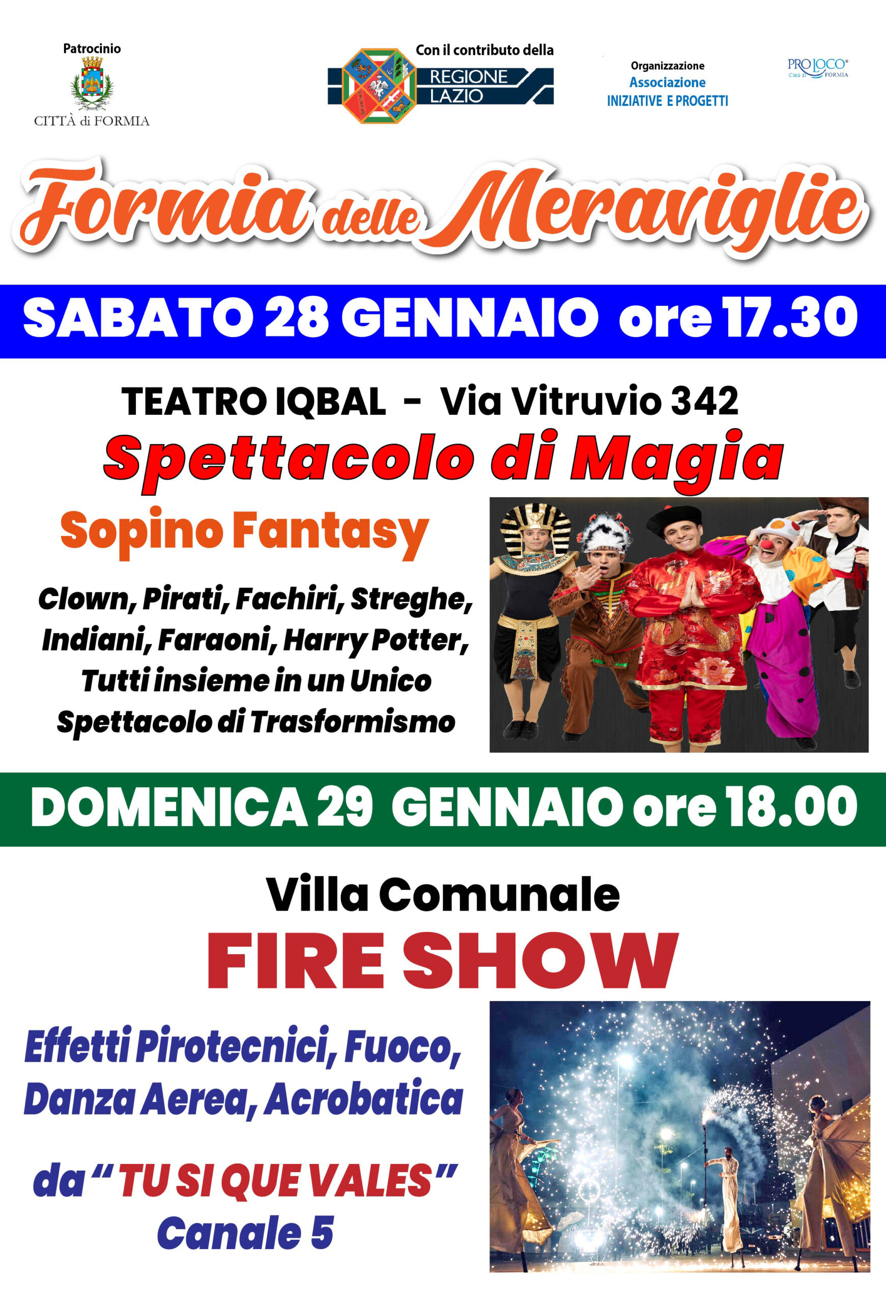 Formia delle Meraviglie avrà l’obiettivo di interessare e coinvolgere tutti i ceti sociali attraverso manifestazioni ed eventi che esprimono la gioia di starinsieme alla Musica, agli Spettacoli, alla Magia.