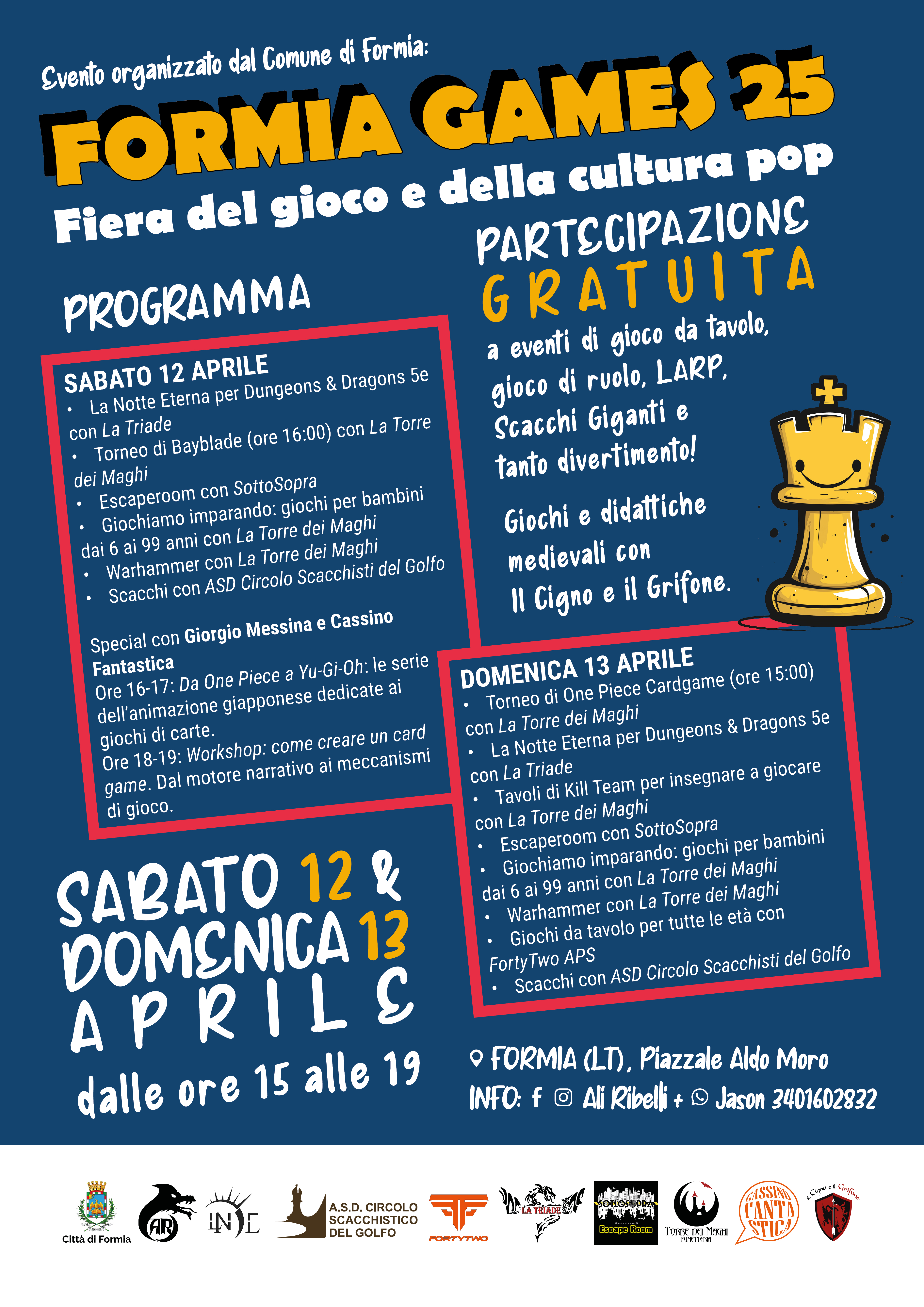 Formia Games: un weekend di gioco, socialità e creatività per i più giovani – Il Comune di Formia, in collaborazione con Ali Ribelli Edizioni, è lieto di annunciare Formia