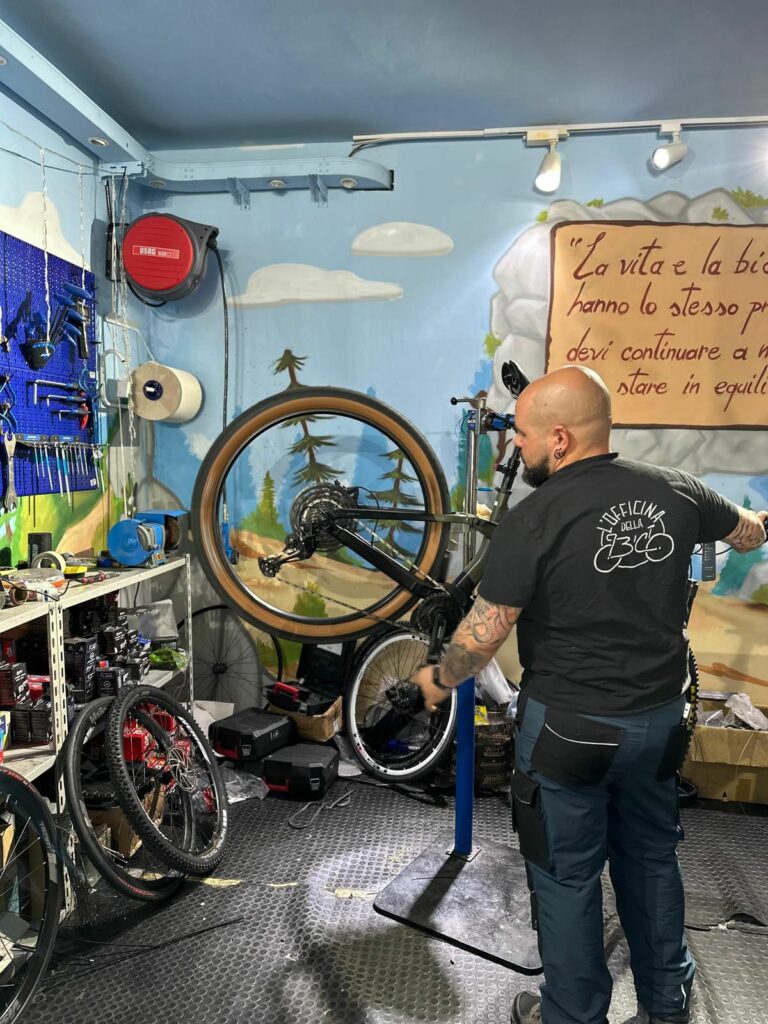 Chi entra in officina non trova solo biciclette e attrezzi, ma anche un’ispirazione appesa a una tabella ben visibile: “La vita e la bici hanno lo stesso principio, devi continuare a muoverti per stare in equilibrio.” Un motto che per Gabriele è più di una frase: è una filosofia di vita e di lavoro. Oltre al lato imprenditoriale, Gabriele sottolinea anche i benefici del ciclismo: riduzione dello stress, miglioramento della forma fisica, prevenzione di malattie cardiovascolari e un generale aumento del benessere, confermato anche da studi scientifici come quelli dell’International Journal of Sport Medicine.