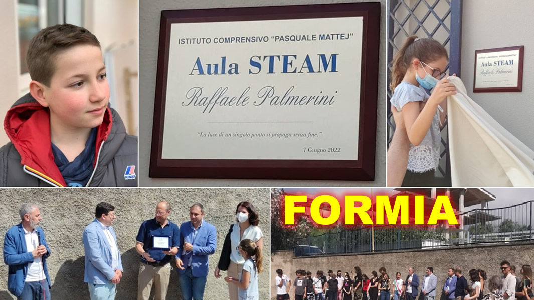 Formia – Intitolazione dell’aula STEAM dell’Istituto comprensivo “Pasquale Mattej” allo studente Raffaele Palmerini – L’istituto comprensivo “Pasquale Mattej” e l’Amministrazione comunale di Formia unite nel ricordo di Raffaele Palmerini, lo studente prematuramente scomparso nel 2021 per un male incurabile. Momenti di profonda commozione si sono vissuti ieri mattina alla cerimonia di intitolazione dell’aula speciale STEAM (science, technology, engineering, art and mathematics, in cui si lavora con la robotica, la stampa 3D e si praticano le discipline artistiche), uno spazio didattico progettato e attrezzato con le risorse più innovative. Un laboratorio – dove all’esterno dell’aula è stata affissa una targa con la scritta “La luce di un singolo punto si propaga senza fine” – nel quale guardare alle scienze, alla tecnologia, alla matematica e alle arti con quegli stessi occhi scintillanti di Raffaele, descritto da chi lo conosceva come un ragazzo particolarmente intelligente, molto curioso che aveva tanta voglia di imparare.