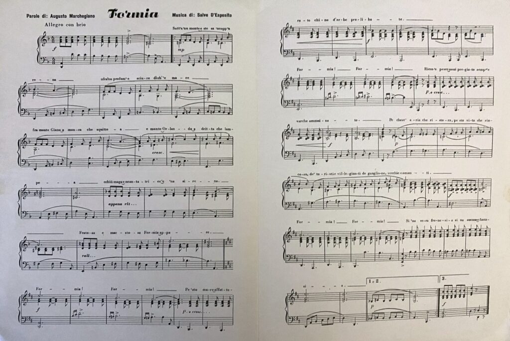 Il suo amore per Formia crebbe di anno in anno, alimentato dalla bellezza dei suoi paesaggi e dalla serenità che trovava in quel luogo. Questa passione profonda si tradusse anche nella sua arte: Salvatore D’Esposito dedicò alla città una canzone intitolata proprio Formia. Per la creazione del testo, si avvalse della collaborazione del paroliere Augusto Marchegiano, dando vita a un brano che celebrava l’incanto e il fascino di questa perla del litorale laziale. La canzone Formia rappresenta non solo un omaggio a un luogo amato, ma anche una testimonianza del legame emotivo che D’Esposito aveva instaurato con la città e con il suo mare, un rapporto così forte da ispirarlo a tradurre in musica e parole l’atmosfera unica che Formia gli trasmetteva.