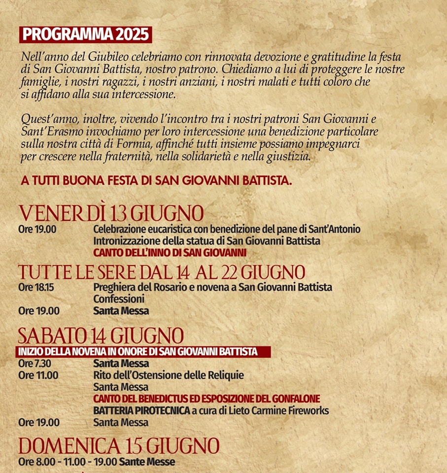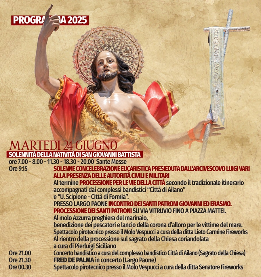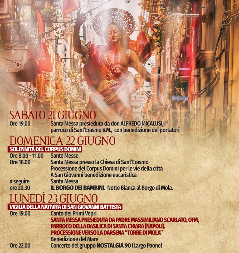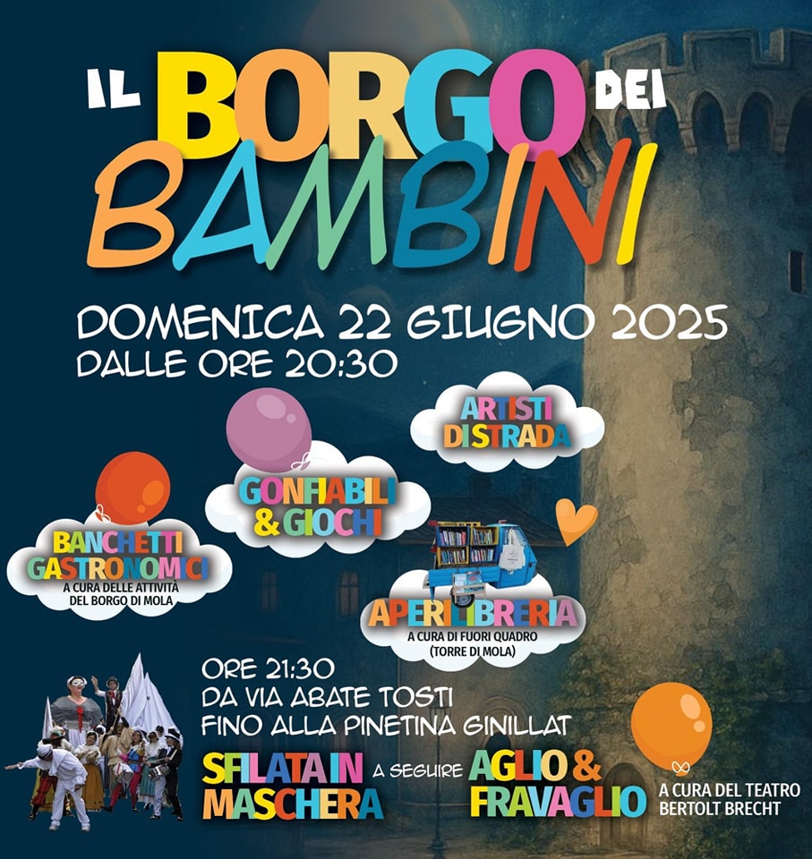 Formia, San Giovanni: il Programma Completo. Il 22 giugno il Borgo dei bambini alle ore 20:30 – A fervono i preparativi per i festeggiamenti in onore di San Giovanni. Il 22 giugno alle ore 20:30 gonfiabili ed artisti di strada animeranno il Borgo di mola. Di seguito le locandine: