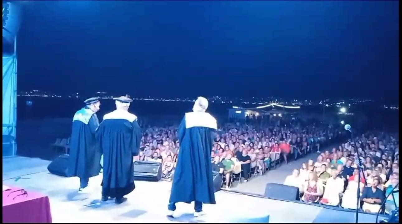 Secondo sold out di fila all’Arena Cicerone. Dopo il brillante debutto dello scorso 13 agosto con “Ciao Signo’” firmato dal duo Marzocca-Sarcinelli, anche la serata di ieri nell’area del Piazzale Caposele ha registrato ancora una volta il tutto esaurito (1.300 posti a sedere). Applausi a scena aperta e tante risate per lo spettacolo di cabaret “Lezioni di napoletanità” del trio Alan De Luca- Amedeo Colella-Lino D’Angiò, che ha divertito il numerosissimo pubblico che non ha voluto mancare all’evento promosso dall’amministrazione comunale di Formia guidata dal sindaco Gianluca Taddeo e dall’Assessorato al Turismo. Aneddoti storici raccontati in maniera accattivante e umoristica da Colella, detto “il professore”, e dove si sono inserite le canzoni, le imitazioni e i monologhi dei due attori D’Angiò e De Luca. Il risultato finale? Una miscela esplosiva esilarante con un ritmo senza sosta in un viaggio tra storia e risate. Tre ‘congressisti’, in abito da docenti universitari, per una lectio magistralis senza precedenti. “Un’altra serata di successo – hanno sottolineato il sindaco di Formia Gianluca Taddeo e l’assessore al Turismo Giovanni Valerio – Gli eventi realizzati in una location suggestiva a due passi dal mare, sul litorale di Vindicio, stanno riscuotendo particolari consensi e soddisfazioni, con la presenza di tante famiglie e di persone di ogni fascia d’età. Un format accattivante, indovinato, tra