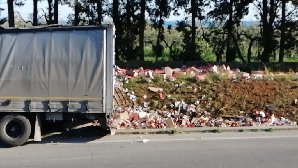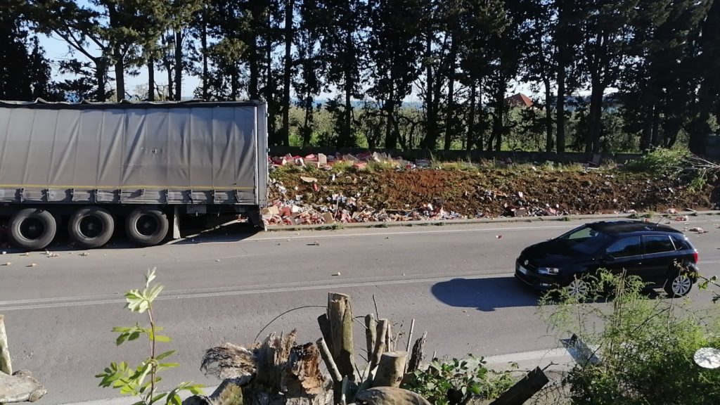 E’ accaduto pochi minuti fa. Un segnalatore ci ha inviato le foto e il video dell’accaduto. Un Tir sulla superstrada all’altezza di Via Pietra Erta fronte la Termotecnica ADN è uscito fuori strada rovesciando il suo carico di omogeneizzati. Sul posto finanza, polizia e vigili urbani.