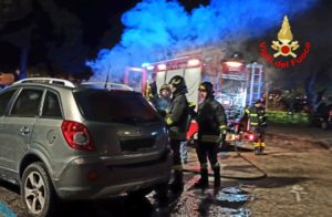 Sul posto, il personale *VVF* intervento, constatava la presenza di una vettura parcheggiata coinvolta da un principio di incendio.