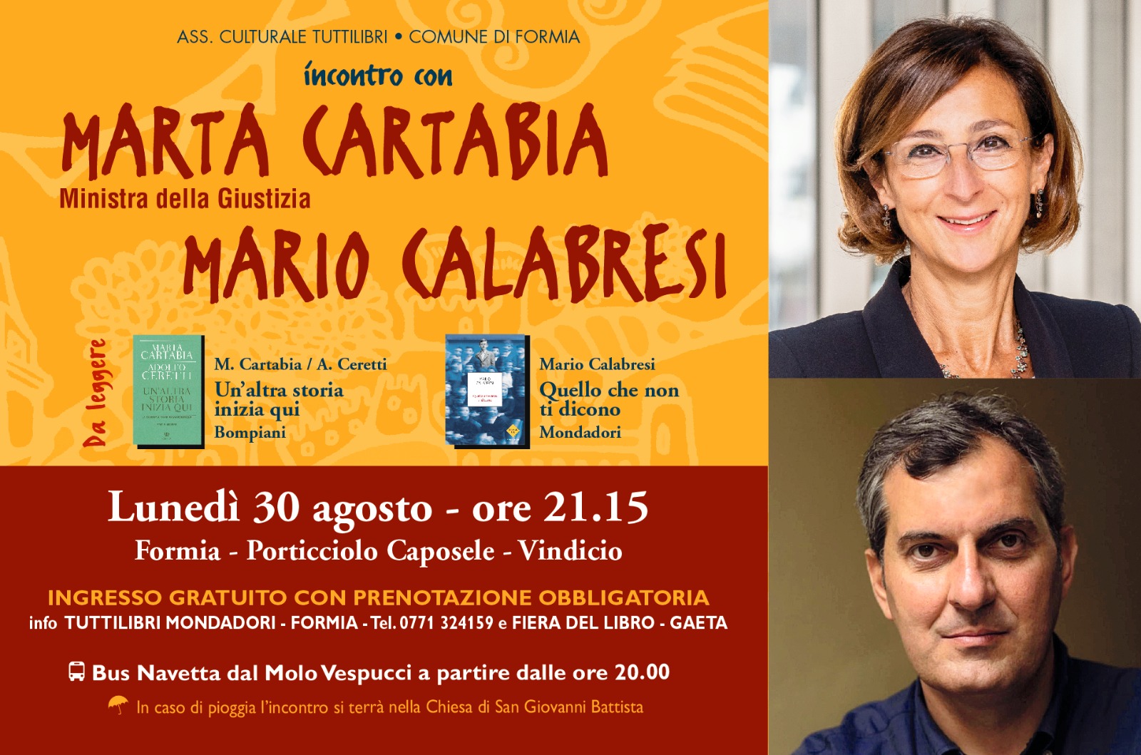 Nel terzo appuntamento di quest’anno (lunedì 30 agosto ore 21,15 – Porticciolo Caposele, Vindicio) il Ministro della Giustizia Marta Cartabia e Mario Calabresi (Ingresso gratuito con prenotazione obbligatoria e Greenpass)