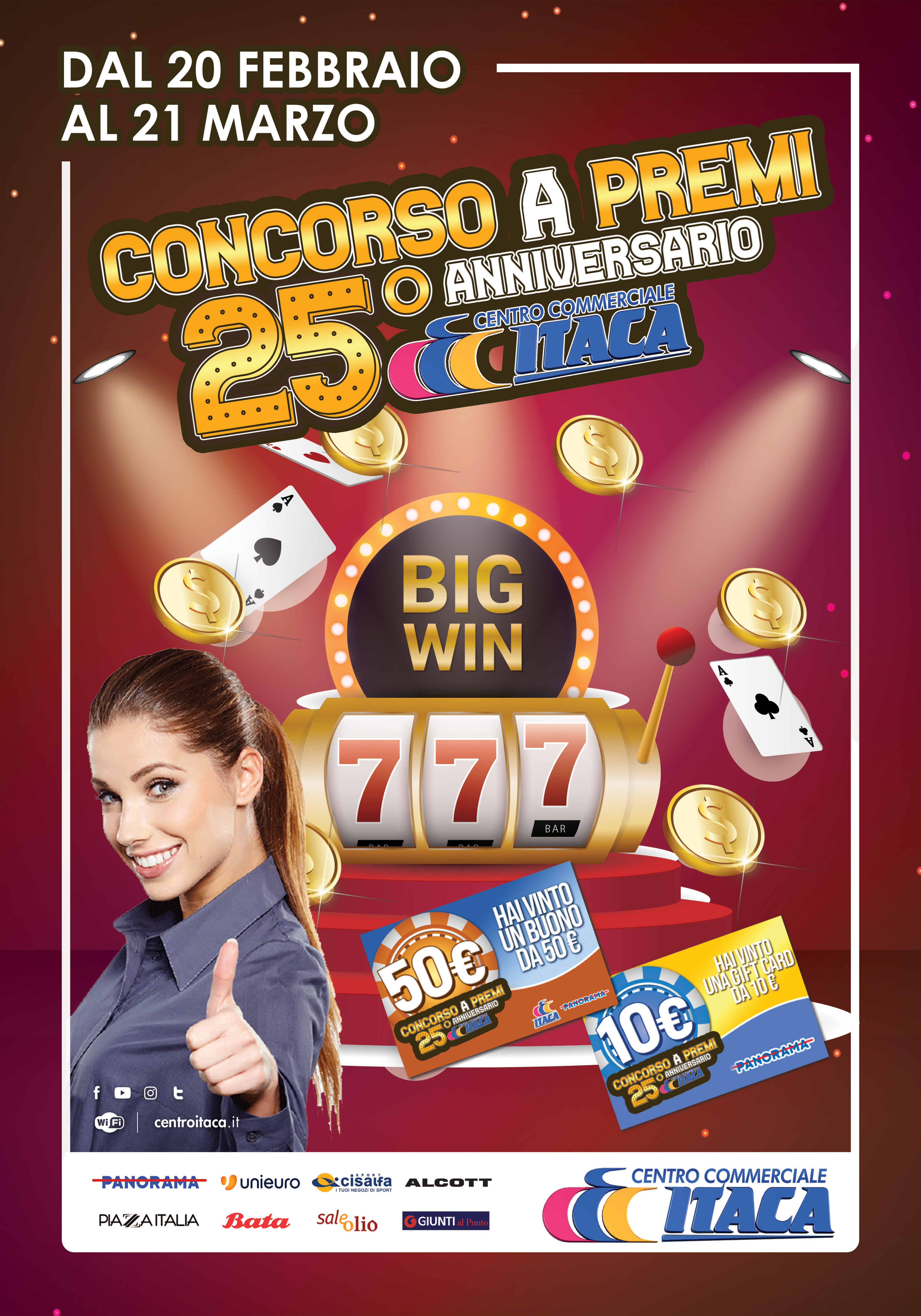 Il Centro Commerciale Itaca di Formia compie 25 anni e festeggia la ricorrenza con un grande concorso a premi in corso dal 20 febbraio scorso al 21 marzo. I partecipanti possono vincere Gift Card e buoni acquisto spendibili presso il Supermercato Panorama e tutti i punti vendita aderenti all’iniziativa all’interno del Centro Itaca. Per partecipare basta presentare uno scontrino d’acquisto del valore minimo di 10 euro giornalieri non cumulabili e tentare la fortuna. In palio tre buoni acquisto da 100, dieci buoni acquisto da 50, ottanta buoni acquisto da 20, duecentosessanta buoni acquisto da 10 ed infine cinquecento Gift Card dal valore di 10 euro.