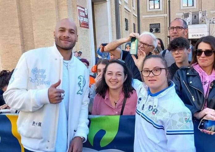 Chiara Vingione e Marcell jacobs in foto a La Corsa Dei Santi di Roma. Due grandissimi Testimonial Azzurri.