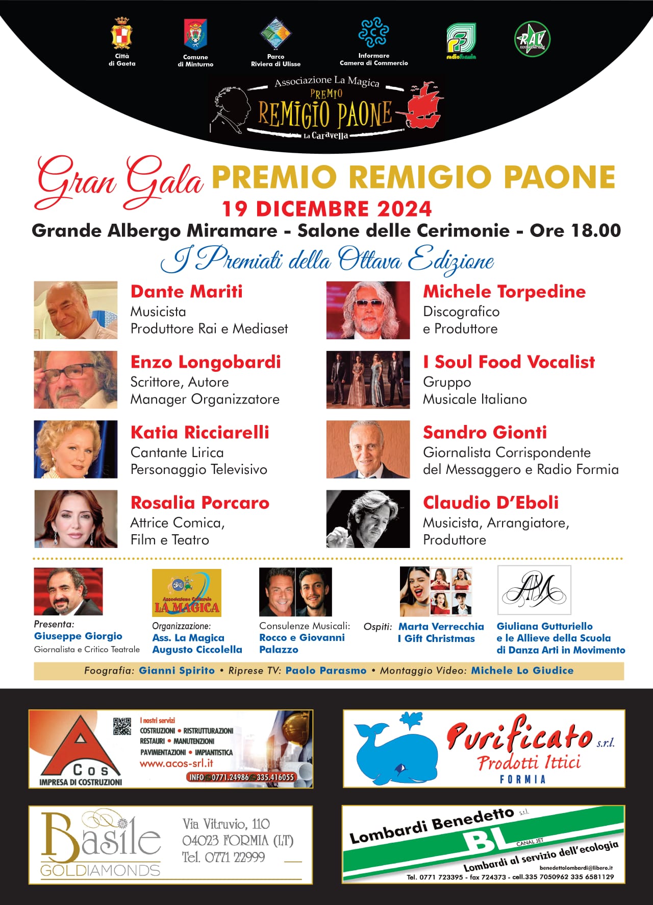 Ottava Edizione del “PREMIO REMIGIO PAONE” Giovedi 19 Dicembre presso il GRANDE ALBERGO MIRAMARE – Giovedi 19 Dicembre presso il GRANDE ALBERGO MIRAMARE alle ore