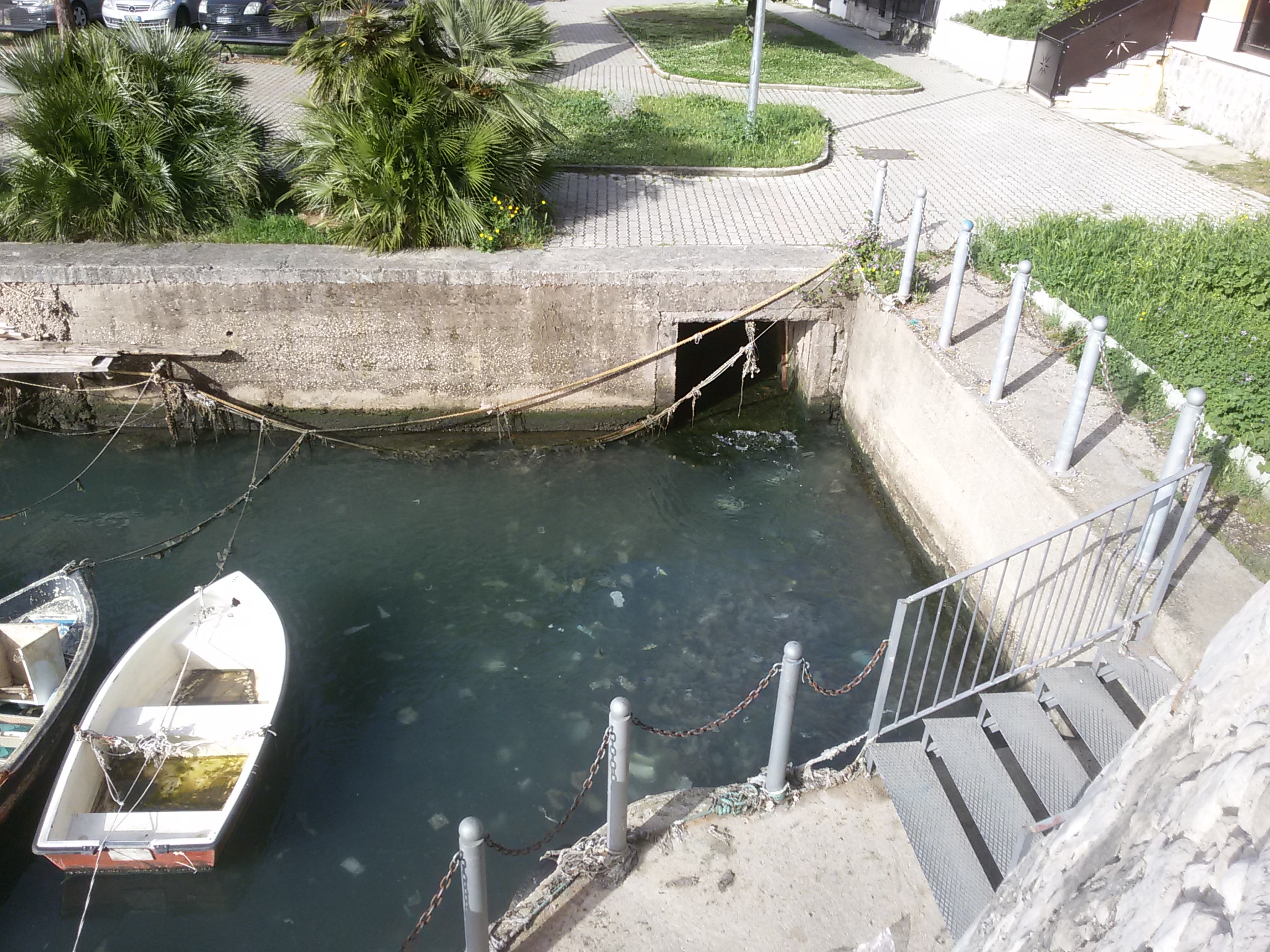 Nei mesi scorsi si è conclusa l’azione di bonifica lungo gli edifici prospicienti Largo Purificato nel Borgo di Mola, a seguito di tale attività si è iniziata una fase di monitoraggio del canale acque bianche affluenti presso la darsena e si sono riscontrati degli afflussi anomali di acque nere e materiale plastico.