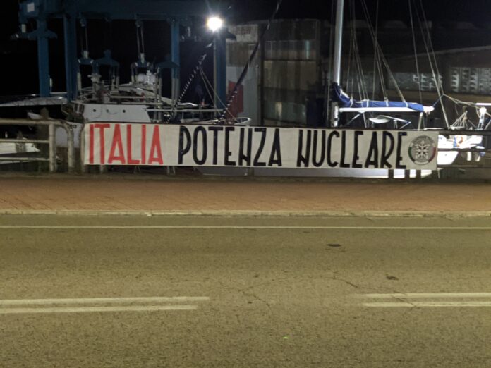 Riportiamo un documento diffuso dagli attivisti di Gaeta. “Italia potenza nucleare”, questo il testo degli striscioni apparsi in decine di città italiane a firma di Casa Pound Italia. L’obiettivo, spingere sul possibile ritorno a un programma di indipendenza energetica fondato sul nucleare. “Nonostante i due precedenti referendum in Italia si sta risvegliando una coscienza critica sul tema energetico anche e soprattutto a livello politico – si legge in una nota diffusa dal movimento – L’aumento del costo dell’energia, che ricade sulle famiglie, non può non portare a una revisione dei programmi nazionali in tema di nucleare che, come dimostrano più studi tecnici, è sicuro, conveniente e pulito.