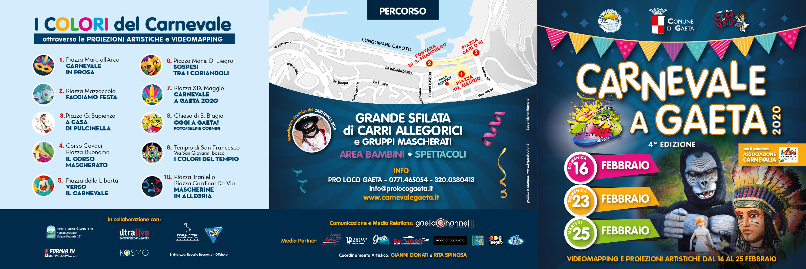 AttualitàGaeta CARNEVALE A GAETA 2020 10 giorni di puro divertimento By Redazione - Gennaio 21, 2020 0 3051 Share FacebookTwitterWhatsApp Si prolunga il carnevale gaetano che quest’anno durerà dieci giorni. Molti gli eventi e spettacoli previsti oltre che la sfilata dei carri allegorici. Di seguito le immagini del Carnevale a Gaeta 2020