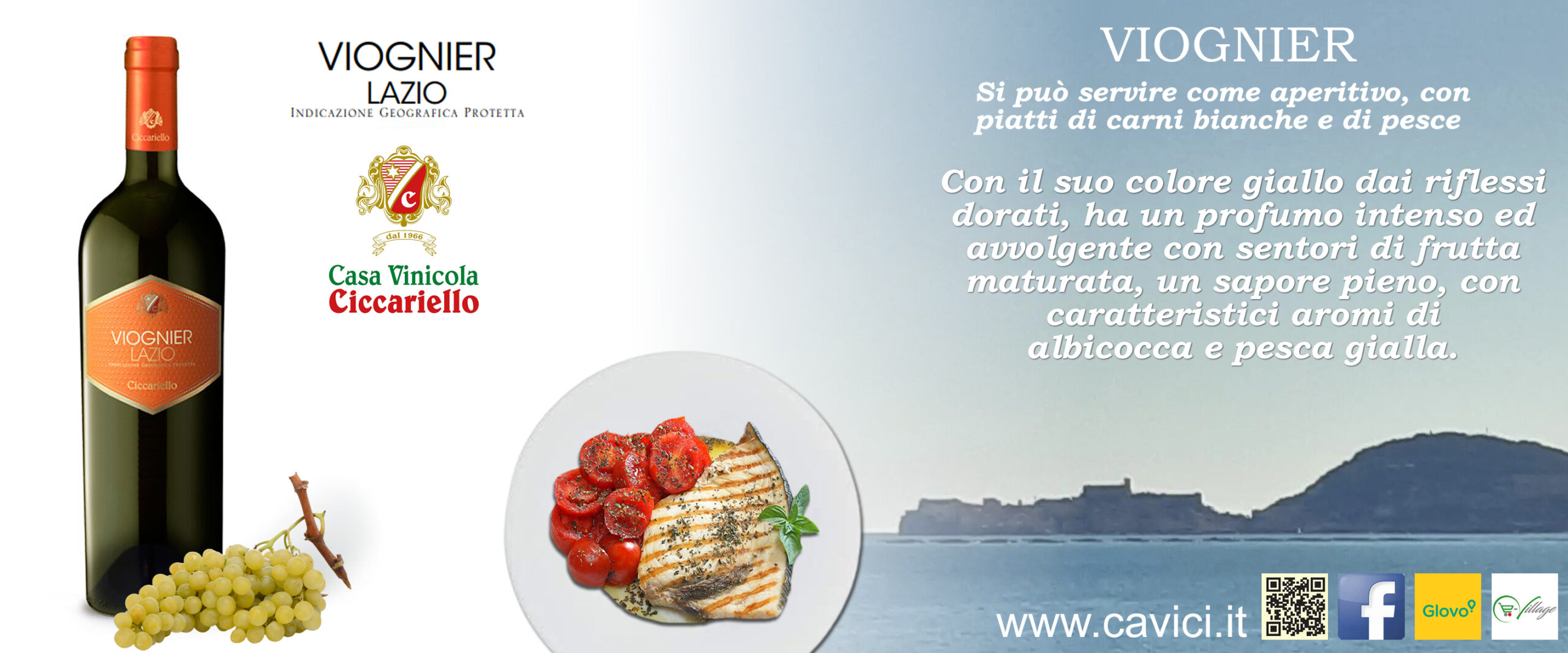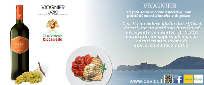 CAVICI: Viognier Lazio IGP – Continua il nostro cammino di bacco nella prestigiosa cantina dei vini CA.VI.CI. (Casa Vinicola Ciccariello) di Gaeta con il vino Viognier che nasce da uve “Viognier”. Con il suo colore giallo dai riflessi dorati, ha un profumo intenso ed avvolgente con sentori di frutta maturata, un sapore pieno, con caratteristici aromi di
