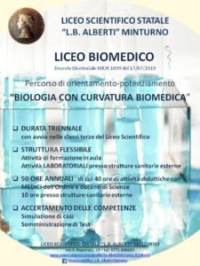 In questo articolo, è riportato che il Liceo Alberti di Minturno sarebbe il primo nel Lazio meridionale ad offrire il percorso di potenziamento biomedico per le matricole dell’anno scolastico 2019/2020. Ebbene, mi preme informarLa che il Liceo Alberti in realtà non ha introdotto alcun corso di potenziamento biomedico. Al contrario, è il Liceo Scientifico Enrico Fermi di Gaeta ad aver offerto ai nuovi iscritti dell’anno scolastico 2019/2020 la possibilità di intraprendere un percorso formativo con potenziamento di biologia con curvatura biomedica. Le sarei