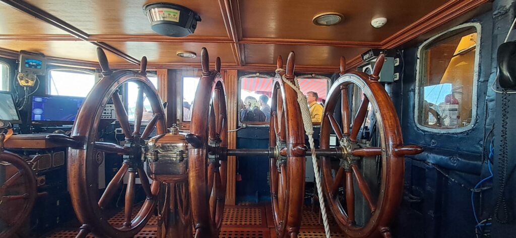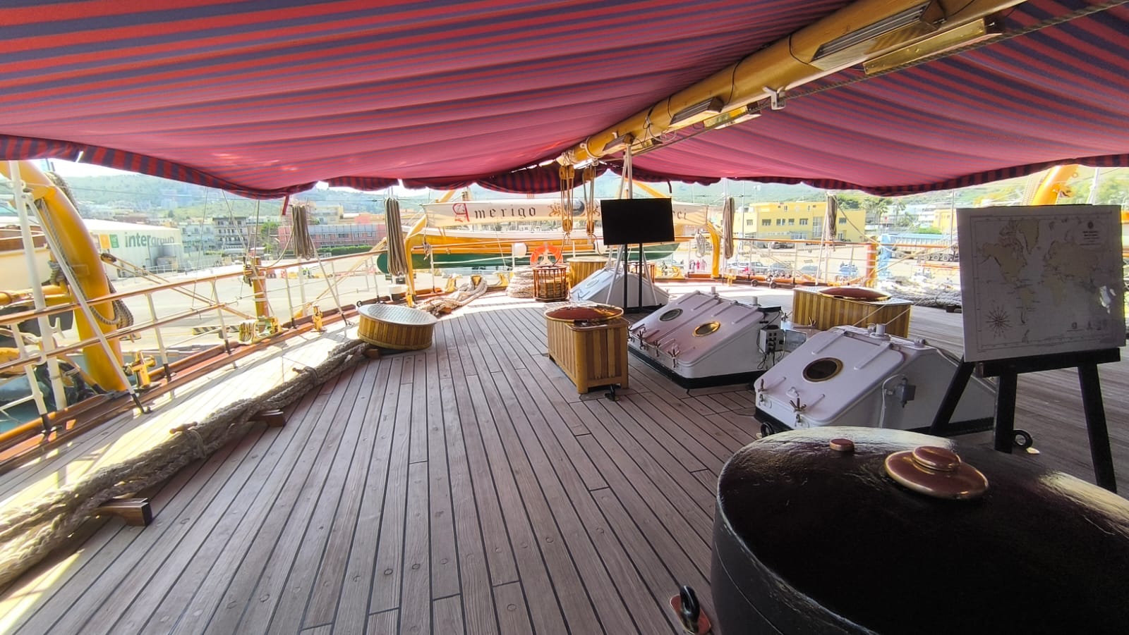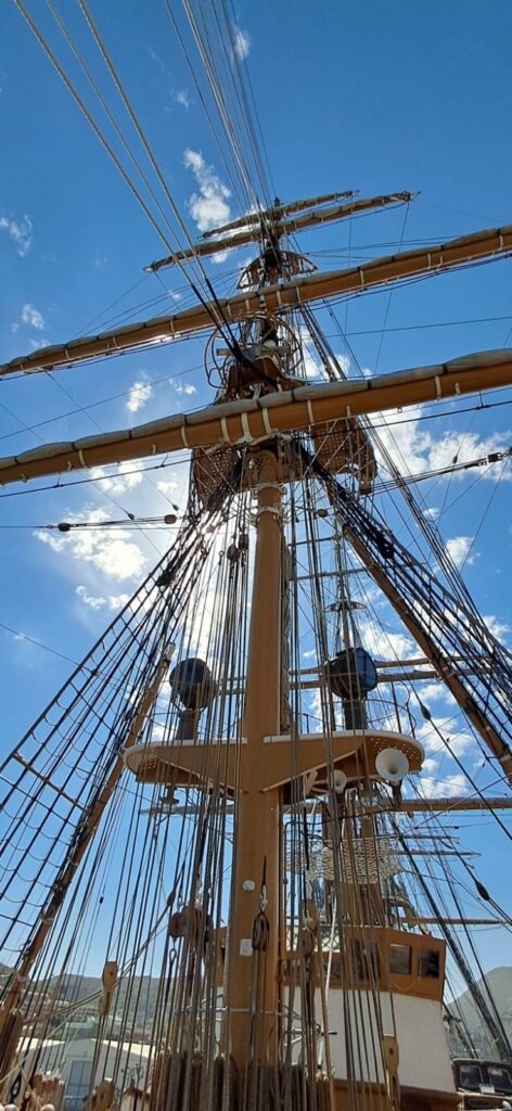 La nave, approdata in città la sera del 24 maggio, ha aperto le sue passerelle al pubblico nelle giornate del 25 e 26, accogliendo centinaia di visitatori attratti dal suo fascino antico e immutabile. Tra loro, anche io, salita a bordo in una giornata baciata da un sole terso, quasi complice nel voler rendere ancora più memorabile l’esperienza.