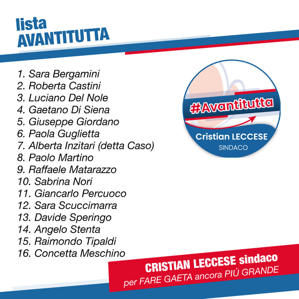 Gaeta: Candidati Lista Avantitutta per Cristian Leccese Sindaco