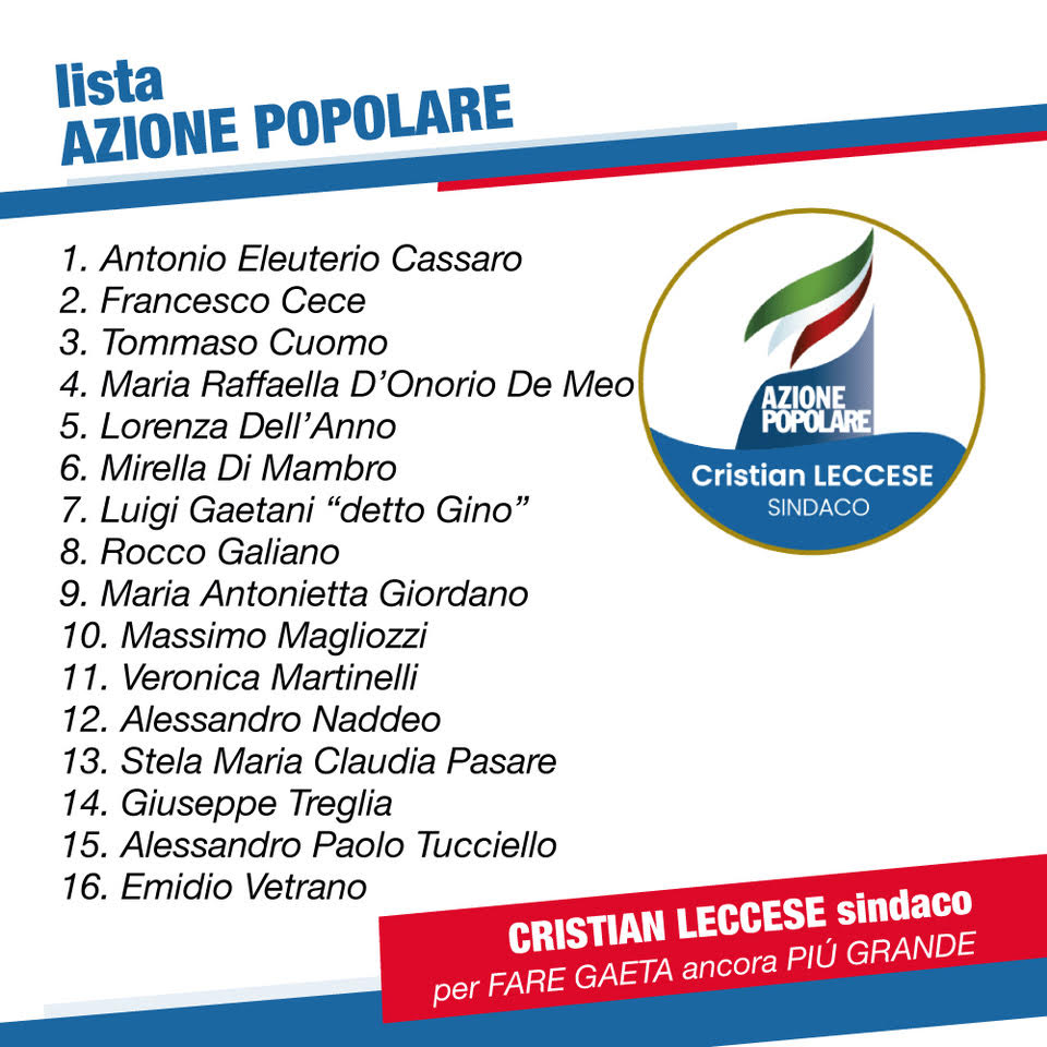 Gaeta: Candidati Lista Azione Popolare per Cristian Leccese