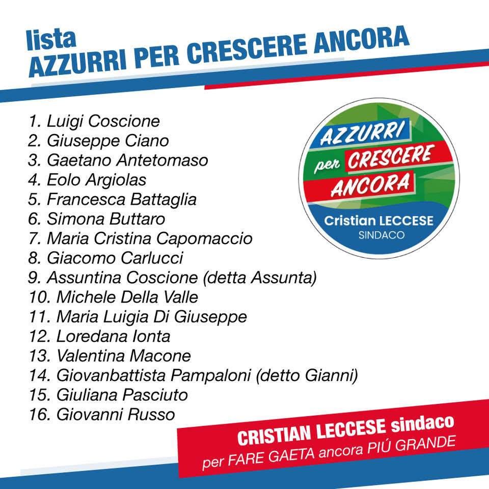 Gaeta: Candidati Lista Azzurri per crescere ancora a sostegno per Cristian Leccese