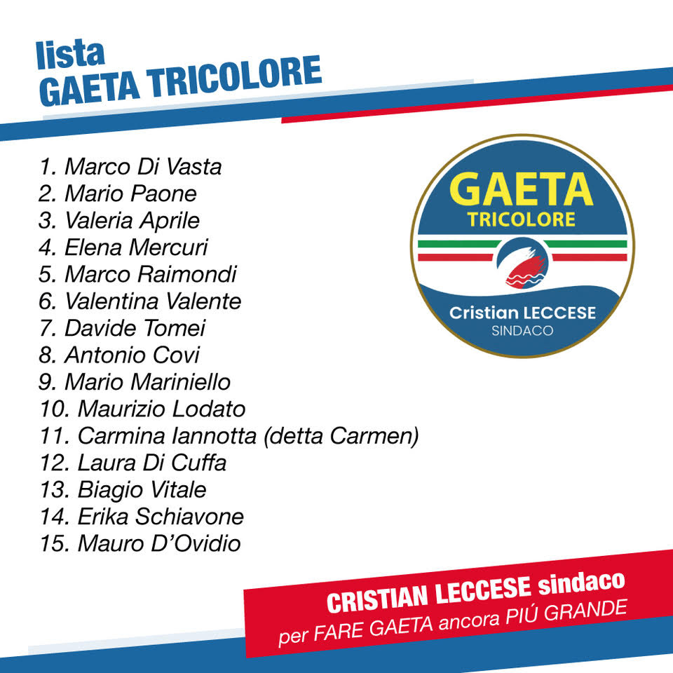 Gaeta: Candidati Lista Gaeta Tricolore per Cristian Leccese sindaco