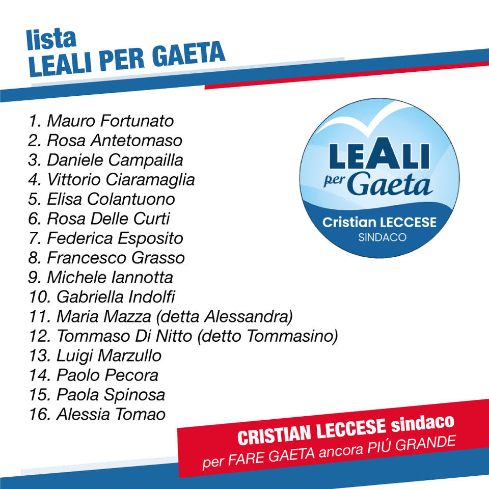 Gaeta: Candidati Lista LeAli per Gaeta a sostegno di Cristian Leccese