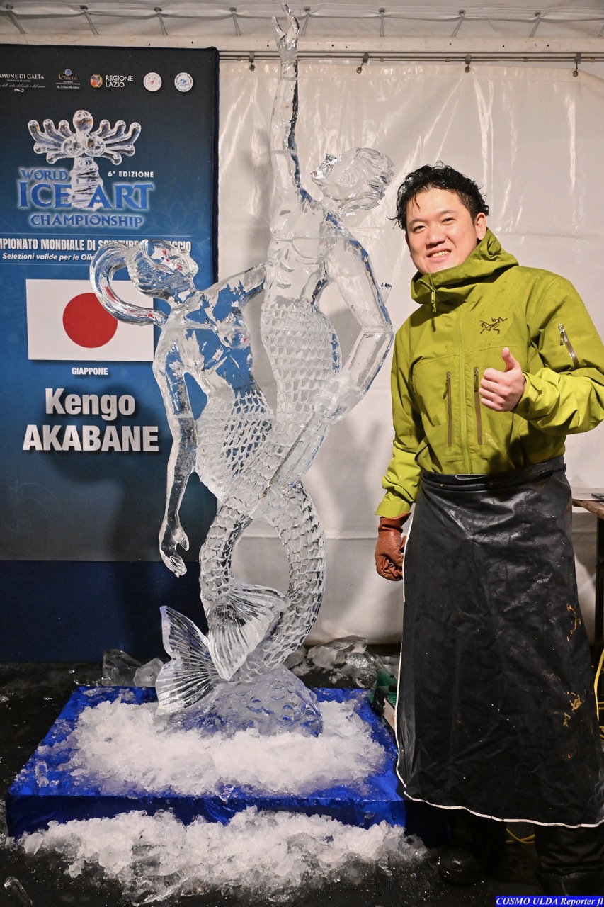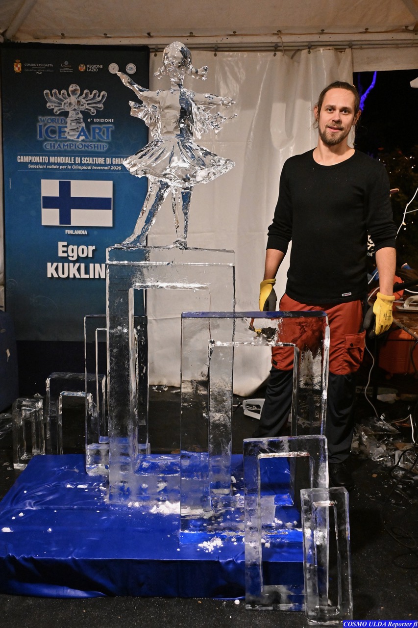 La tappa di Gaeta del Campionato del Mondo di sculture di ghiaccio è stata vinta dal finlandese Egor Kuklin, che grazie a questo risultato potrà rappresentare il proprio Paese alle Olimpiadi Invernali di Milano 2026, insieme al secondo classificato, il giapponese Kengo Akabane. Al terzo posto, l’altro rappresentante della Terra del Sol Levante, Hiroaki Kimura, seguito dal francese Samuel Girault e dal malese Kee Gawah. I premi speciali del pubblico, che ha potuto esprimere la propria preferenza attraverso una scheda, sono andati all’italiano Lorenzo Mazzella e al giapponese Hiroaki Kimura; mentre i riconoscimenti speciali della qualificata giuria internazionale, composta da Amelio Mazzella, Silvio Viola, Gaetano Mignano, Ewa Rutkowska e Roberto Coccoloni, sono stati attribuiti al malesiano Kee Gawah e all’indonesiano Sutama Oka.
