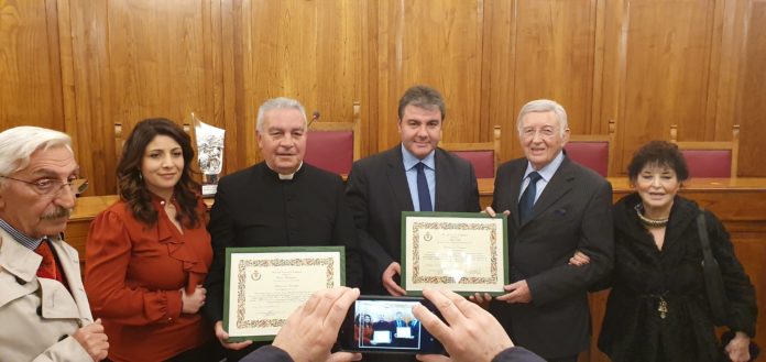 Il 12 dicembre 2019 nel Palazzo Municipale di Linguaglossa, città metropolitana di Catania, si è svolta la cerimonia – presieduta dal Vescovo di Acireale Mons. Antonino Raspanti e dal Vescovo Emerito di Ragusa Paolo Urso – per la consegna degli attestati di cittadinanza onoraria a don Orazio Barbarino, benemerito Parroco e Arciprete di Linguaglossa, grande animatore di celebrazioni religiose e promotore di importanti eventi culturali, e al Generale di Corpo d’Armata dei Carabinieri (r. o) e Dirigente Generale della Presidenza del Consiglio dei Ministri in pensione, dottor Aldo Lisetti, che da molti anni vive con la famiglia a Gaeta, sulla costa del Lazio Meridionale. Il Sindaco Salvatore Puglisi, presenti tutti i consiglieri e un folto pubblico, ha tenuto il discorso ufficiale nella Sala del Palazzo Municipale recentemente restaurato e abbellito, quindi ha consegnato le pergamene ai due nuovi cittadini onorari.