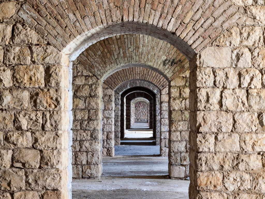 batterie per la difesa contraerea e marittima subendo danni consistenti. Il sito fu definitivamente dismesso dall’uso militare nel corso degli anni ’90 del secolo scorso. Forte “Emilio Savio” è costituito da una struttura interamente costruita sotto il profilo del terreno ed articolato su quattro livelli. Il piano principale corrisponde a quello del cortile d’ingresso dove si affacciano gli ambienti principali, mentre alcuni chiostri danno luce agli ambienti interni e ai servizi. Sono presenti quindi due livelli sottostanti destinati a spazi di servizio e agli avancorpi realizzati alla quota del fossato. Nel fronte sud, verso il mare, è presente un piano rialzato sotto il livello una terrazza destinata alle postazioni di artiglieria.