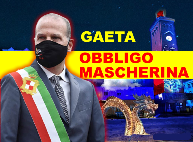 Obbligo di indossare nei luoghi all’aperto i dispositivi di protezione delle vie respiratorie (obbligo della mascherina a Gaeta) dalle ore 10.30 alle ore 13.00 e dalle ore 16.30 alle ore 20.30 dei giorni 18, 19, 24, 25, 26, 31 dicembre 2021 e 1,2 gennaio 2022, nelle vie e piazze di seguito indicate: