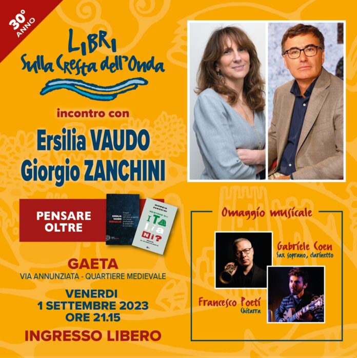 La XXX edizione di Libri Sulla Cresta dell’Onda nel mese di settembre propone 3 appuntamenti letterari di grande interesse a completamento della programmazione estiva. Dopo gli emozionanti incontri al Teatro romano di Minturno rispettivamente con Melania Mazzucco e Maurizio de Giovanni tenutisi a luglio e agosto che hanno visto la partecipazione di centinaia di lettori, si prosegue a Gaeta venerdì 1° settembre. Il Sagrato della Chiesa della SS. Annunziata ancora una volta si trasformerà in un vero salotto letterario con 1.000 posti a sedere. Protagonisti della serata saranno l’astrofisica ERSILIA VAUDO, autrice di “MIRABILIS, cinque intuizioni (più altre in arrivo) che hanno rivoluzionato la nostra idea di universo” (Einaudi) e il giornalista e conduttore radiofonico e televisivo GIORGIO ZANCHINI, che ha recentemente pubblicato per Rai Libri “ESISTONO GLI ITALIANI? Indagine su un’identità fragile”.