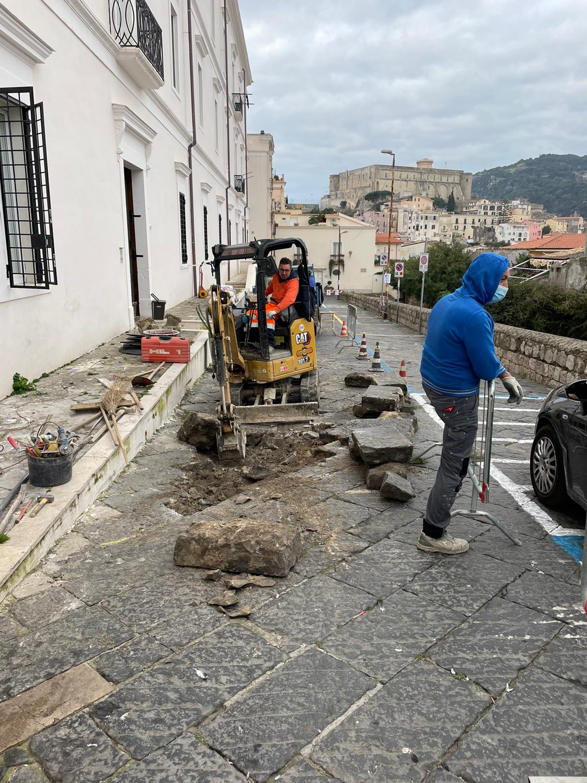 “Un intervento – spiega il Sindaco Cosmo Mitrano – che rientra in un’azione di riqualificazione complessiva del territorio comunale e, nel caso specifico, della parte alta del nostro centro storico. Un’opera necessaria a seguito della formazione di sconnessioni ed un evidente avvallamento che creava qualche preoccupazione. Una zona che merita la massima attenzione, non solo perché si trova proprio nel cuore del centro storico di Gaeta, ma anche perché è molto frequentata. Bisognava intervenire in tempi brevi e in maniera risolutiva per ripristinare la viabilità e la sicurezza stradale. E così è stato. Abbiamo programmato e predisposto l’intervento al termine del quale saranno ripristinate condizioni di maggiore sicurezza. Anche per questi lavori si conferma l’impegno assunto davanti i nostri cittadini concretizzando la politica del “fare”. Un’azione amministrativa che in questi anni ci vede lavorare alacremente su tutto il territorio comunale.