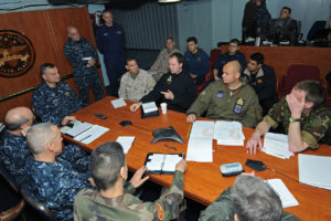 soÈ stata realizzata, con costruzione iniziata l’8 gennaio 1969, presso il cantiere Northrop Grumman Shipbuilding Newport e varata l’8 gennaio 1970, con una lunghezza di 189 metri, un baglio massimo di 33 metri. Ma in realtà che cosa si prevede al presente per Gaeta? I bene informati parlano di un potenziamento dell’organico con l’arrivo di 450 marines con famiglie, complessivamente duemila persone. I marines saranno a disposizione del comando della nave, in caso di emergenze nello scacchiere mediterraneo. Parimenti dovrebbe riaprirsi la base logistica realizzata a Monte Orlando, nel cuore del Parco Regionale della Riviera di Ulisse. Quindi, in sostanza, un comando strategico Europa – Africa, anche a sostegno degli stati africani associati, a cominciare dalla Liberia. Ogni volta che una nave militare italiana giunge nella rada è festa grande per la popolazione, in particolare per i più giovani, con visite a bordo e brevi crociere. Ma soltanto una più consistente presenza statunitense può incidere beneficamente sull’economia e il commercio cittadino.