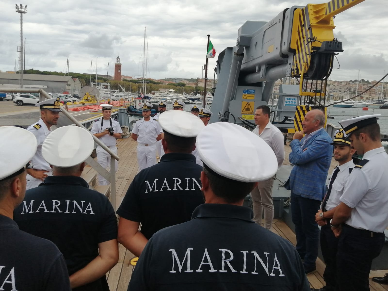 «Ho accolto con molto piacere – ha commentato il Sindaco Cristian Leccese – il Comandante Gianluca Pisani e i membri del suo equipaggio, gli ufficiali gaetani Esposito e Fasano, che hanno arricchito di orgoglio l’incontro. La nostra Città ha un fortissimo legame con la Marina Militare, che nacque, non possiamo dimenticarlo, proprio qui a Gaeta il 13 febbraio 1861, giorno in cui venne unita sotto un’unica bandiera la costituenda flotta militare. Un legame storico e indissolubile, che ci ha visti anche protagonisti di un progetto che ha coniugato esigenze storiche con obiettivi di sviluppo di turismo culturale, memoria storica, recupero dell’identità culturale, miti, simboli e valenze paesaggistiche. Un ringraziamento speciale anche per la gradita visita effettuata a bordo di Nave Levanzo, e per l’accoglienza che mi è stata riservata».