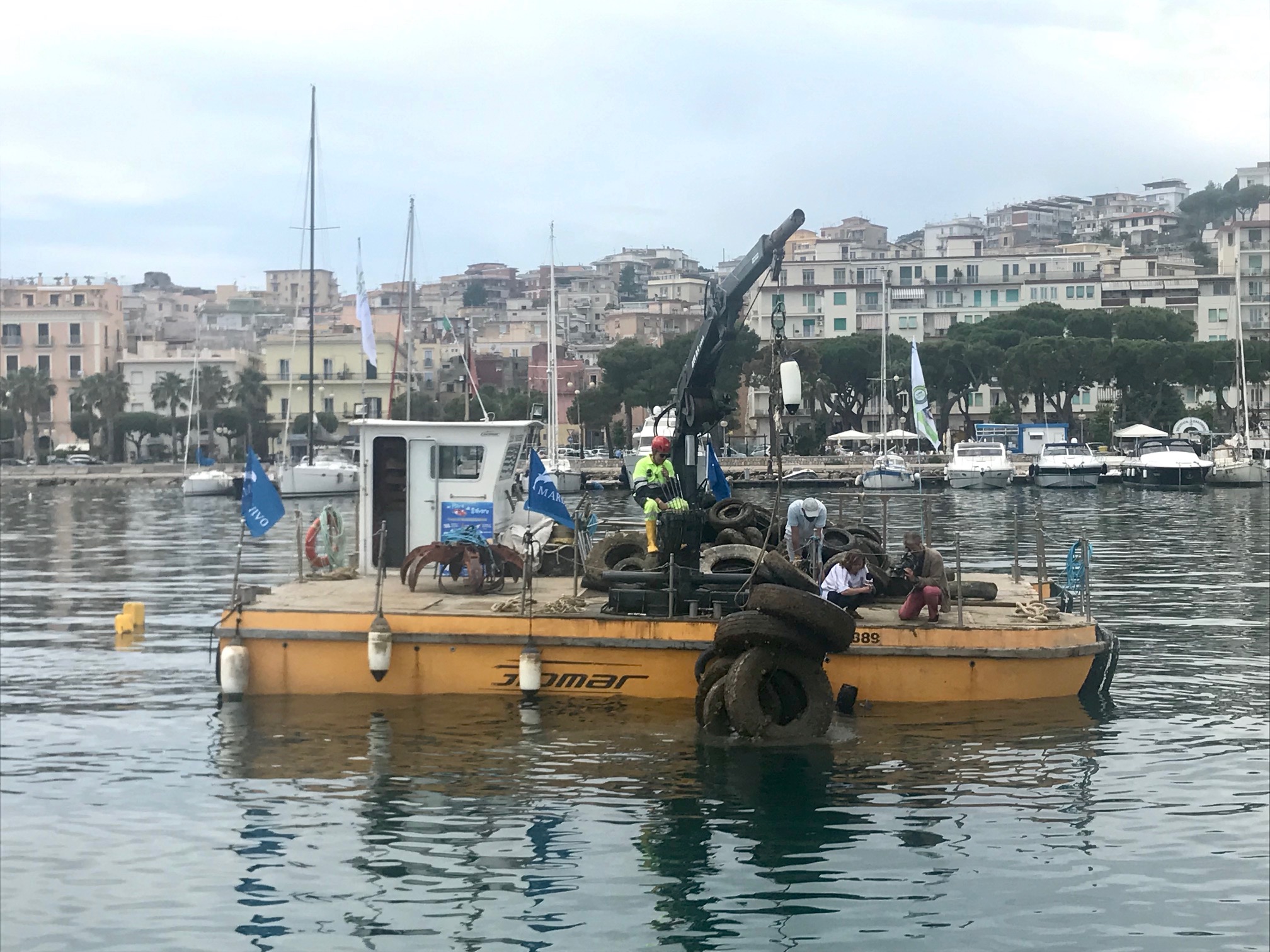 Questa mattina presso la banchina della Darsena Porto Salvo di Gaeta si è svolta la raccolta straordinaria di pneumatici fuori uso (PFU) nell’ambito del progetto “PFU Zero sulle coste italiane”.