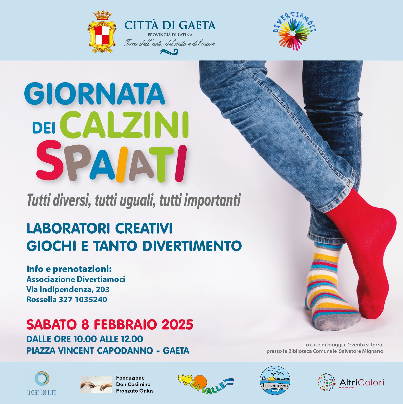 Sabato 8 febbraio Gaeta anche celebrerà la giornata dei calzini spaiati, un modo simpatico