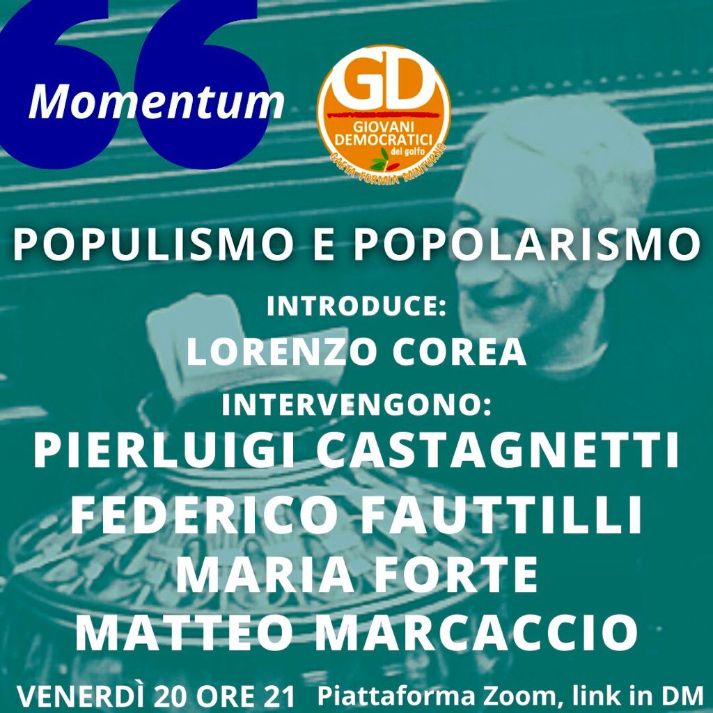 Questa sera sulla loro pagina Facebook trasmetteranno un incontro dal titolo “Populismo e Popolarismo” dopo l’introduzione di Lorenzo Corea, segretario dei Giovani democratici del golfo, interverranno Pierluigi Castagnetti già deputato e segretario nazionale del Partito Popolare Italiano, Federico Fauttilli già deputato nella scorsa legislatura, capo dipartimento presso la presidenza del consiglio dei ministri e segretario regionale del Partito Popolare Italiano del Lazio, Maria Forte docente di filosofia e Matteo Marcaccio capogruppo del Partito Democratico al comune di Minturno e membro della direzione regionale del PD Lazio.