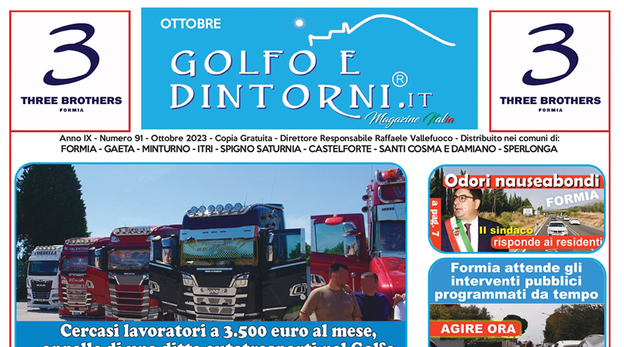 GOLFO E DINTORNI – E’ iniziata ieri pomeriggio la distribuzione del Magazine di ottobre di Golfo e Dintorni. La distribuzione coinvolgerà i comuni del Golfo di Gaeta dove sono collocate le 100+ colonnine. Inoltre Golfo e Dintorni sarà distribuito anche nelle edicole del comprensorio. Non ci resta che augurarvi buona lettura: https://flipbookpdf.net/web/site/80c7da14cbc005a27794f38bc21cd254b6abe8b9202310.pdf.html