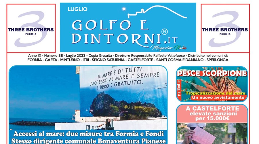 GOLFO E DINTORNI – E’ iniziata oggi pomeriggio la distribuzione del Magazine di luglio di Golfo e Dintorni. La distribuzione coinvolgerà i comuni del Golfo di Gaeta dove sono collocate le 100+ colonnine. Inoltre Golfo e Dintorni sarà distribuito anche nelle edicole del comprensorio. Non ci resta che augurarvi buona lettura: https://www.flipbookpdf.net/web/site/3f3c4d5e65b9cc8ddaa5173520db1daacb1e31b0202307.pdf.html