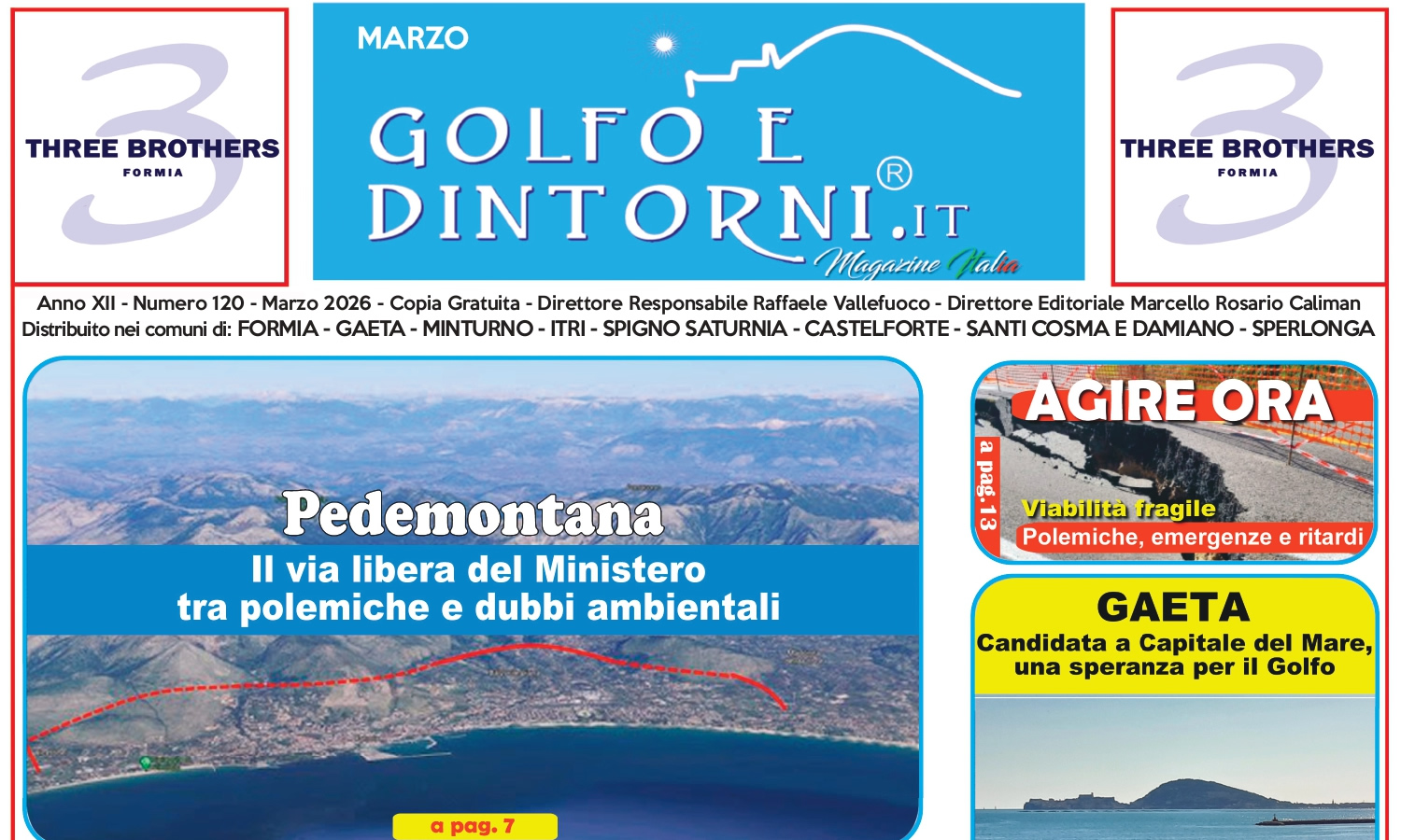 GOLFO E DINTORNI – E’ iniziata ieri la distribuzione del Magazine di Golfo e Dintorni del mese marzo. La distribuzione interesserà i comuni del Golfo di Gaeta dove sono collocate le 100+ colonnine. Inoltre Golfo e Dintorni sarà distribuito anche nelle edicole del comprensorio. Non ci resta che augurarvi buona lettura: https://flipbookpdf.net/web/site/3e9410faa19a7cf50f9df5f0574858bbd0de4f47202602.pdf.html