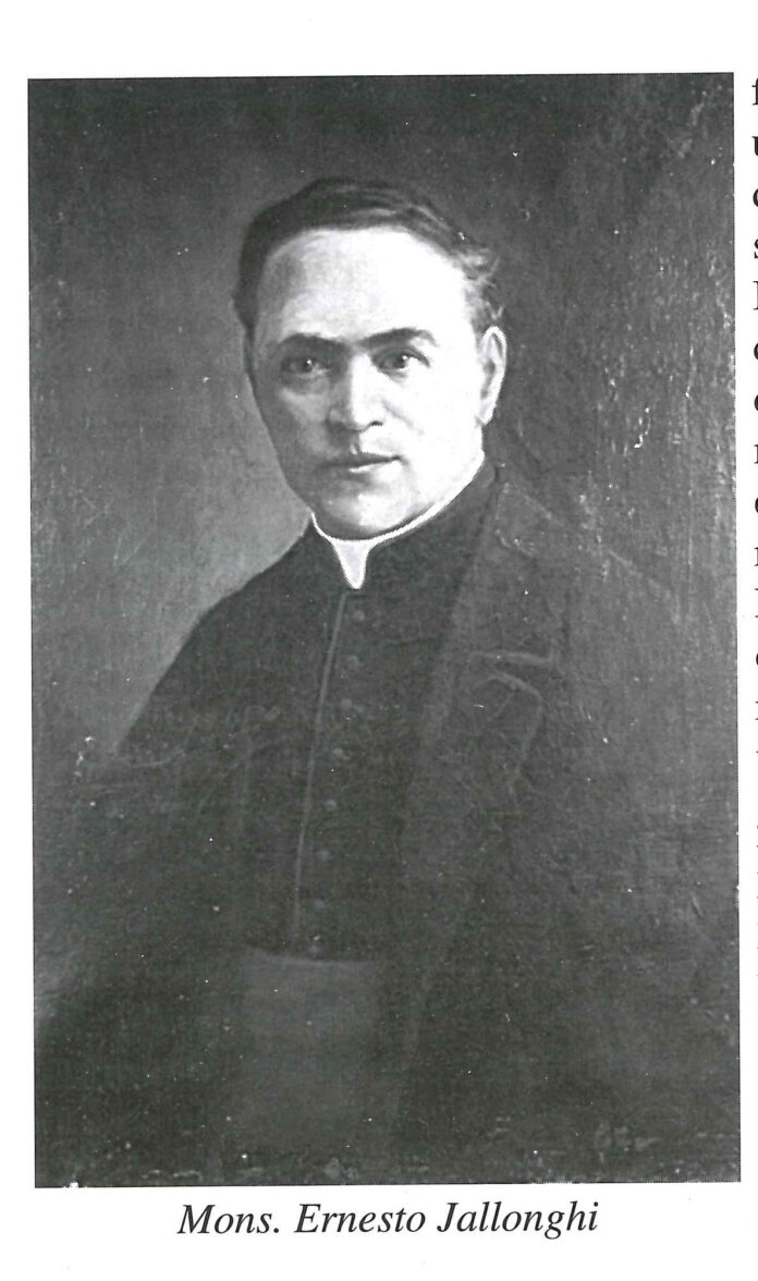 ITRI – Mons. Ernesto Jallonghi fu pastore e studioso preclaro, che, per oltre un quarto di secolo, caratterizzò la vita culturale della terra aurunca, uno scrittore che non potrà essere dimenticato e di cui i suoi conterranei devono andare fieri. La sua esistenza, caratterizzata da una soda pietà mariana, come si evince dal libro “La Madonna della Civita e il suo Santuario!”, si apre ad Itri il 7 marzo 1876, e si chiude il 17 ottobre 1934. Ernesto, figlio di Michelangelo e di Giuseppina Manzi, sorella del celebre astronomo visse e maturò la sua personalità già ben delineata nei tratti essenziali dell’ingegno e del carattere, sin dall’adolescenza. Operò in Roma, nel cuore di un secolo denso di avvenimenti, di continue trasformazioni e di profondi mutamenti anche nello spirito delle popolazioni. In questo contesto storico, lo Jallonghi usò l’ingegno suo straordinario, la sua parola suadente ed illuminante, la penna scorrevole e forbita.